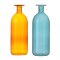 - Charming and Vibrant Colors: This set of vases includes one orange and one blue vase, both featuring transparent, colorful glass that creates a stunning visual appeal. When filled with water, the colors of the vases become even more striking, making them an eye-catching centerpiece in any room. If you prefer, you can also opt to buy a single vase, allowing you to mix and match according to your decor preferences.